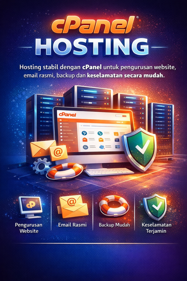 Hosting stabil dengan cPanel untuk pengurusan website, email rasmi, backup dan keselamatan secara mudah.